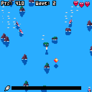 It's that final day, Nessie must survive 10 waves and a boss wave, before finally heading to shore and laying her egg. Try not to get overwhelmed by sharks or any other sea monster in sight, but, a pacifist creature that she is, you can't attack them directly, you must trick them into eating each other. Good luck!